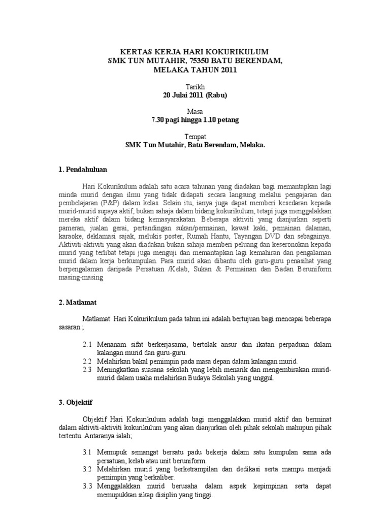 Kertas Kerja Hari Kokurikulum 2011 Kini Pdf
